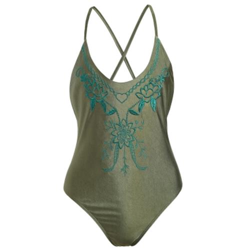 PLUS SIZE CROSSBACK EMBROIDERED SWIMSUIT (PEARL ARMY GREEN)