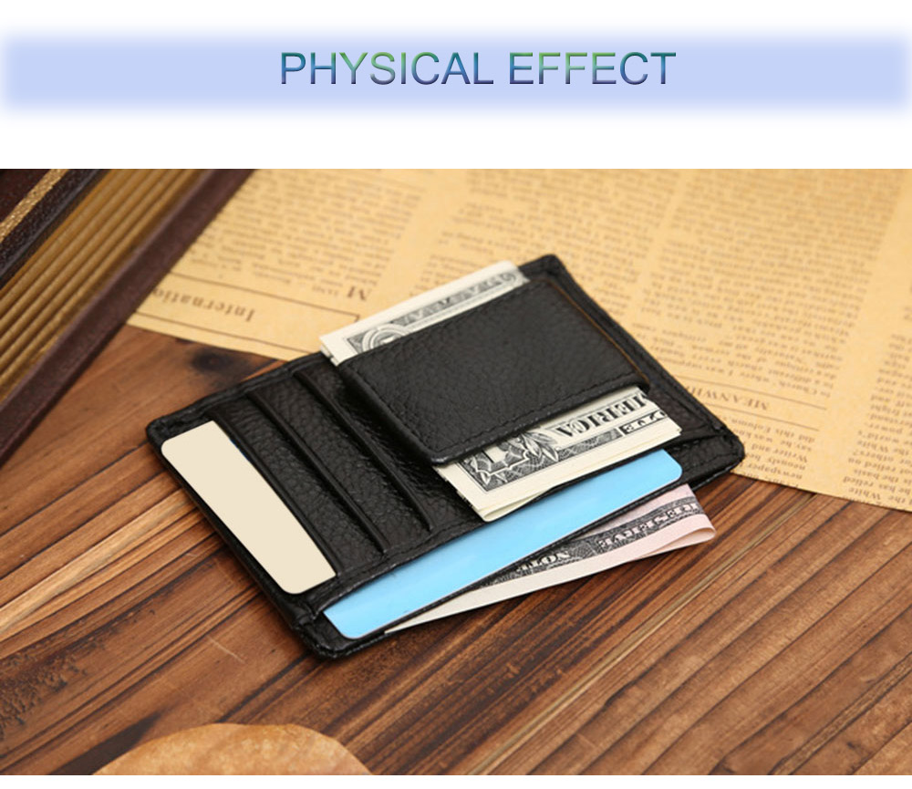 Men Lichee Pattern Solid Color Open Leather Horizontal Magnet Card Wallet Small thin card wallet for your cards.Magnet money clip for your cash. Por...