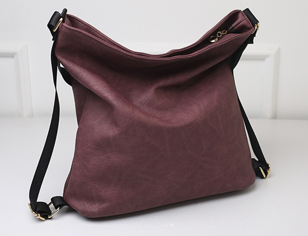 SOLID COLOR MAGNETIC ZIPPER PU LEATHER TRAVEL SHOPPING SCHOOL SHOULDER GIRL BAG (RED VIOLE