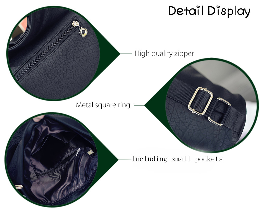 Solid Color Magnetic Zipper PU Leather Travel Shopping School Shoulder Girl Bag