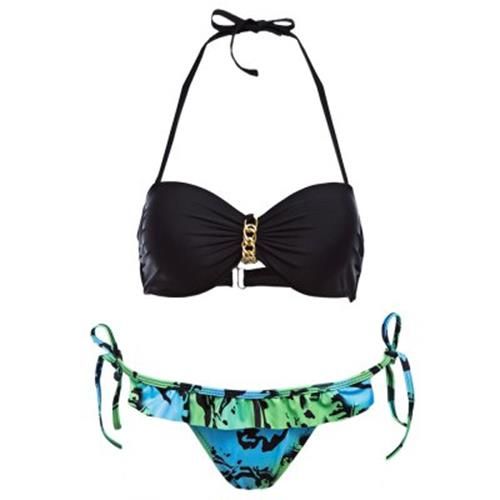SEXY STRAPLESS PADDED PUSH UP BRA LOW WAIST PRINTED FRINGED BRIEFS BIKINI SET FOR WOMEN (B