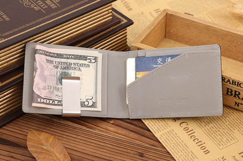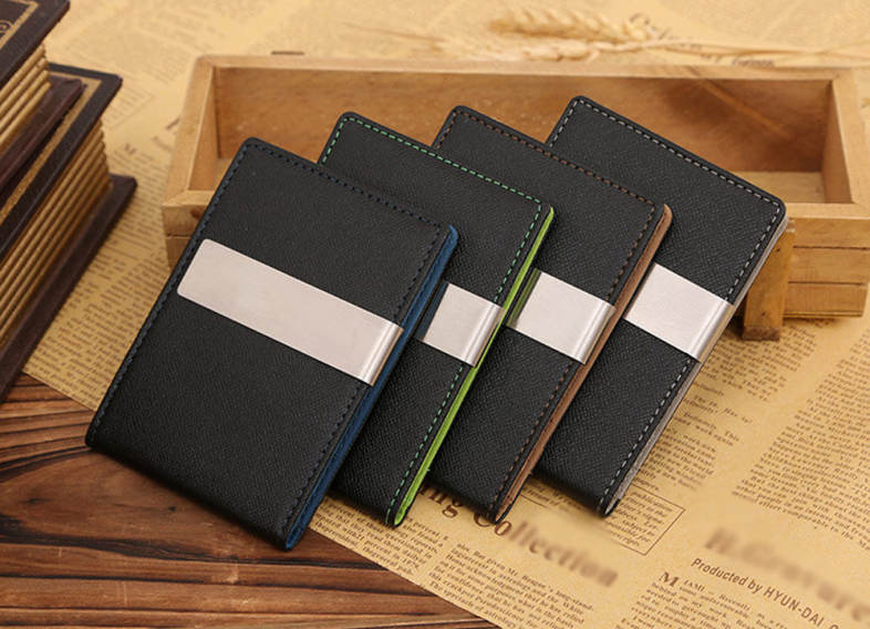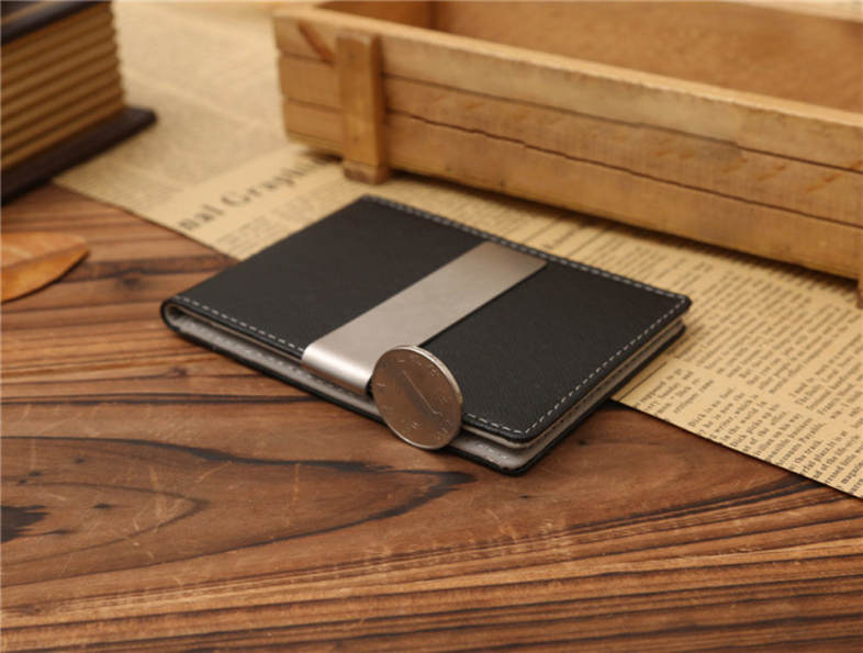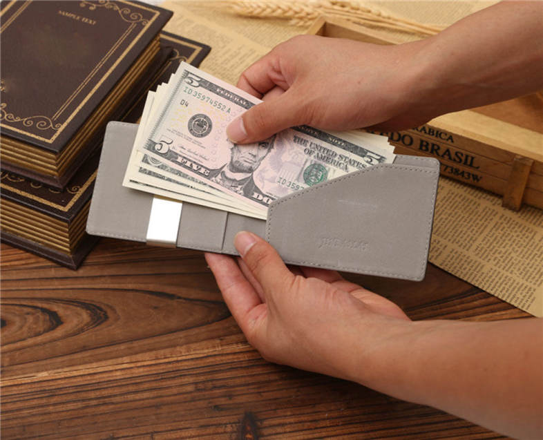 Open Horizontal PU Leather Short Hard Money Clip for Men Women