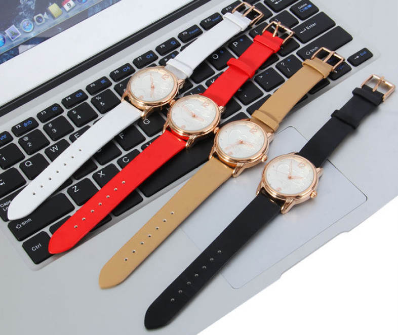 SKONE 9399 WOMEN QUARTZ BIG NUMBER RHINESTONE STEREO ROSE DIAL WATCH HOLLOW POINTER (CHAMP