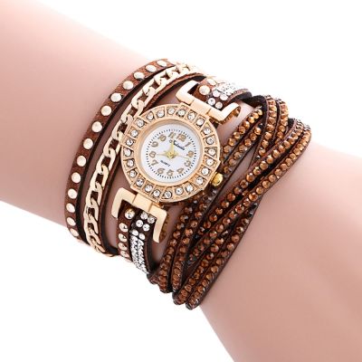 Fulaida Quartz Female Leather Band Rhinestone Wristwatch (COFFEE)