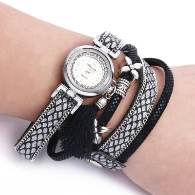 FULAIDA Women Quartz Rhinestone Tassel Bangle Wristwatch (BLACK)