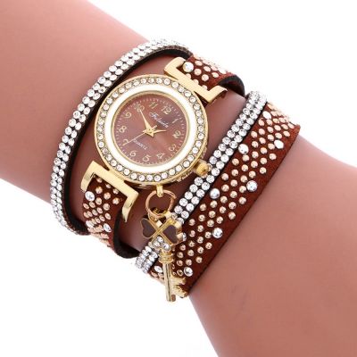 - Unique leather band design decorated with small artificial diamonds, the watch dial reveals endless elegance