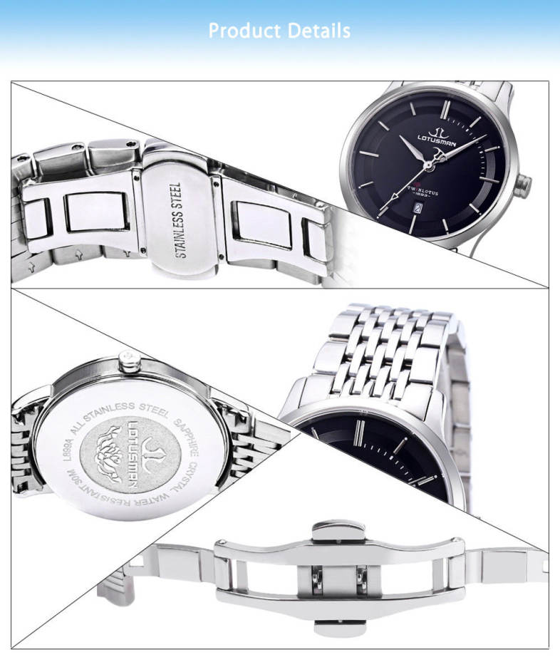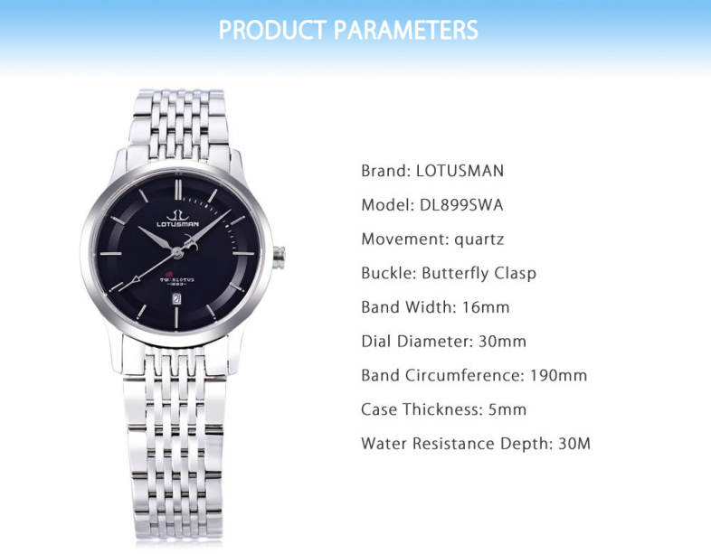 Brief IntroductionLOTUSMAN - To bear witness to a passage, to witness happiness.LOTUSMAN DL899SWA Women Quartz Watch, with imported Swiss quartz movem...