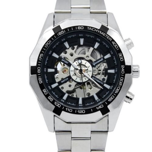 GUCAMEL G043 MEN AUTO MECHANICAL WATCH STAINLESS STEEL BAND HOLLOW DIAL LUMINOUS WRISTWATC