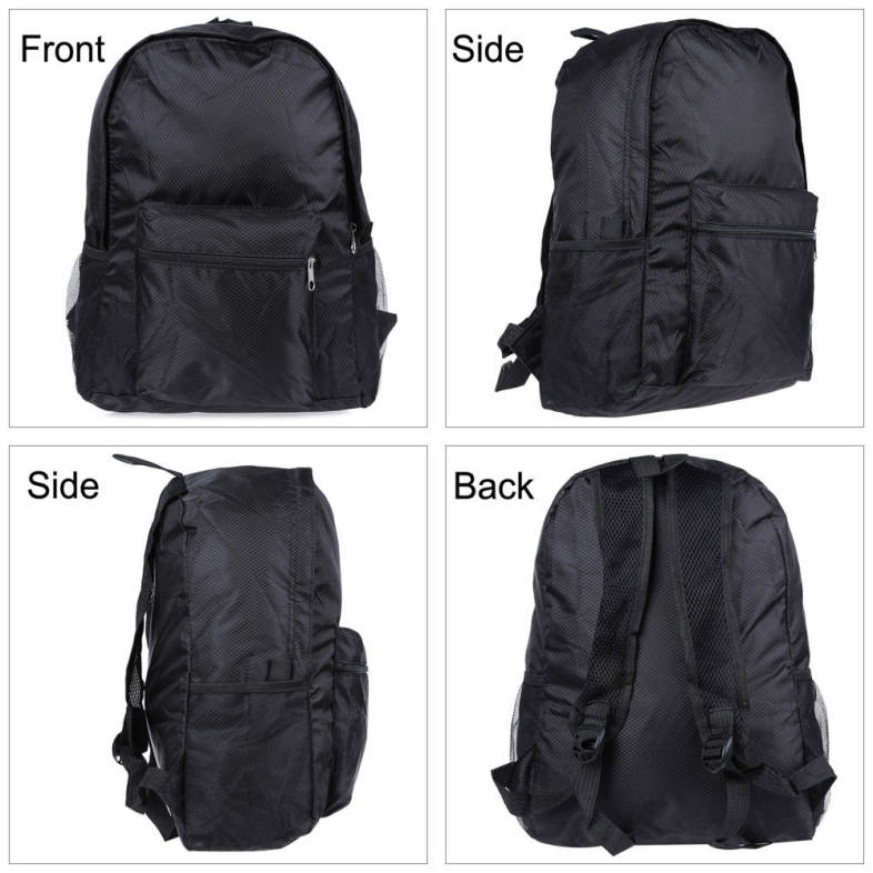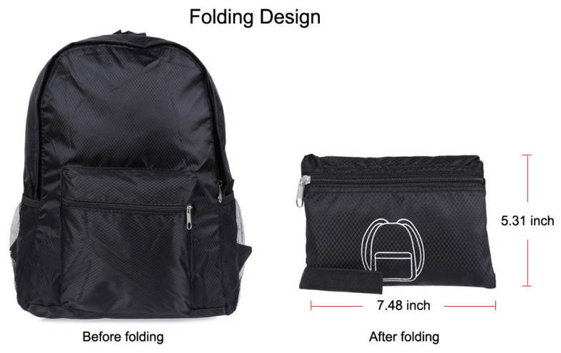● Unique and fashionable, can be used as travel backpack and schoolbag. ● Folding design, the large bag can be folded into a small pouch, portable and convenient to carry. ● High-quality nylon material, good durability and waterproof. ● Outer pocket design, where you can place your phone or some other little gadgets. ● Adjustable shoulder strap, you can adjust it as your need. ● Smooth and durable zipper, guarantees the safety of your bag. ● Approx 18L large capacity with different functional division pockets, enables you to accommodate more. ● Full bag size: 30(L) x 13(W) x 42(H) cm / 11.8 x 5.1 x 16.5 inch.