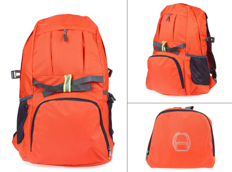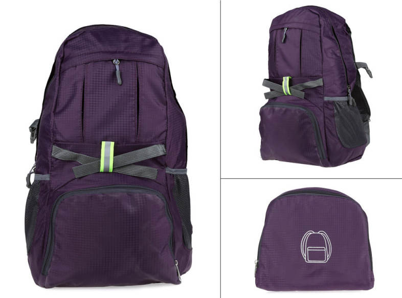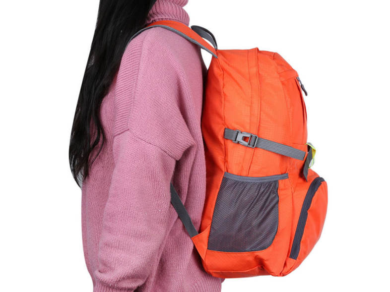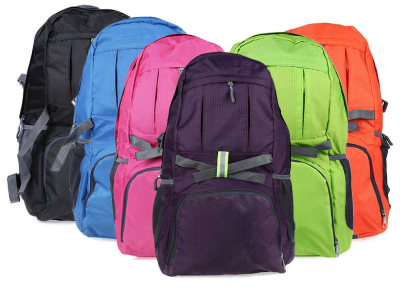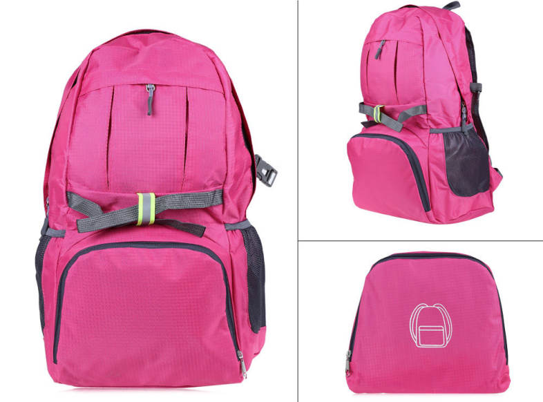 NYLON FOLDING WATER RESISTANT BACKPACK SCHOOLBAG FOR CAMPING HIKING TRAVELING SPORTS (ROSE